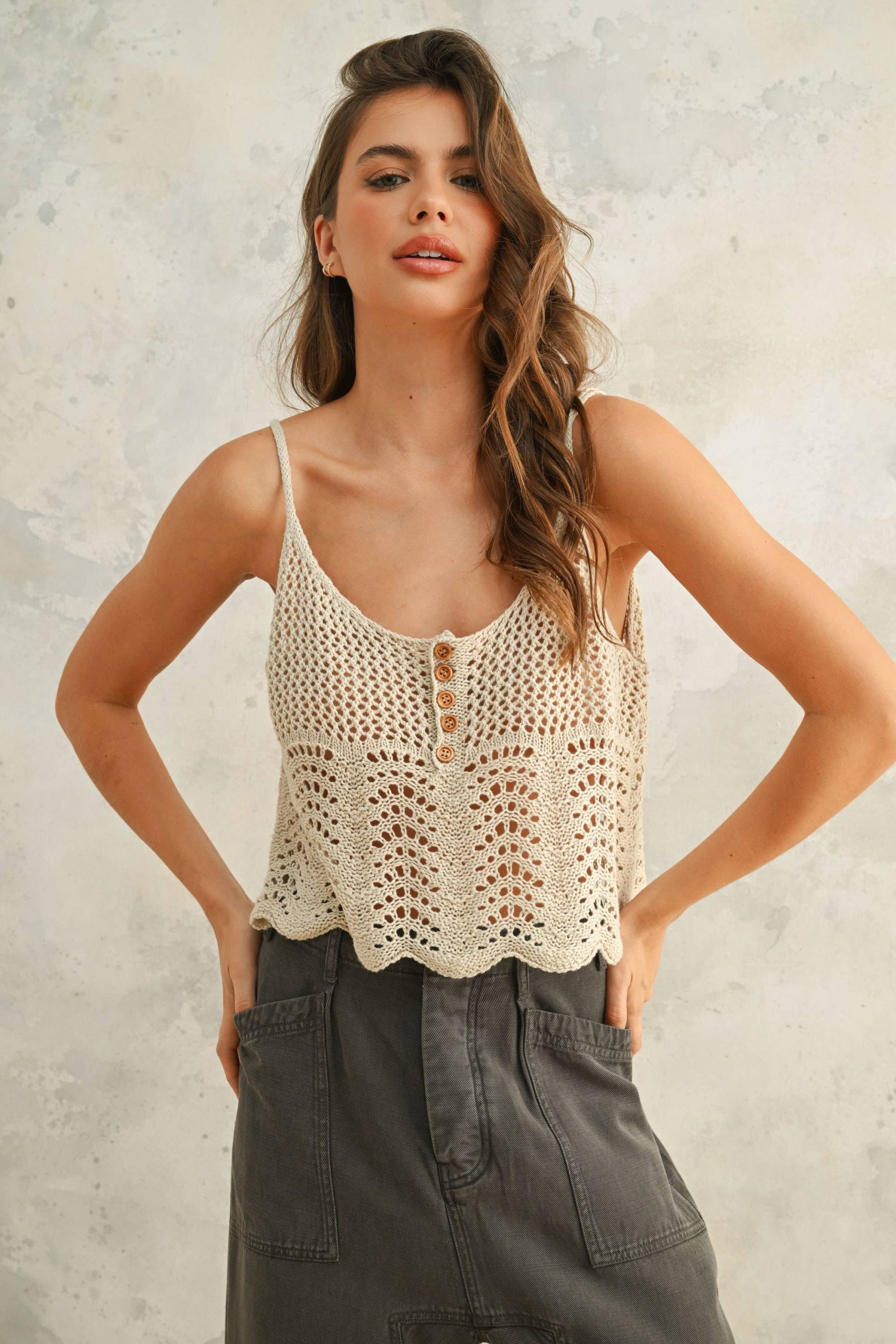 A dreamy combination of vintage-inspired crochet and modern boho vibes, this Crochet Knitted Crop Top is the ultimate warm-weather essential. Featuring delicate open-knit detailing, a scalloped hem, and a button-front accent, this top is lightweight, breathable, and effortlessly stylish. Whether you’re pairing it with high-waisted denim or layering it over a bikini, this boho beauty is a must-have for any free-spirited wardrobe.