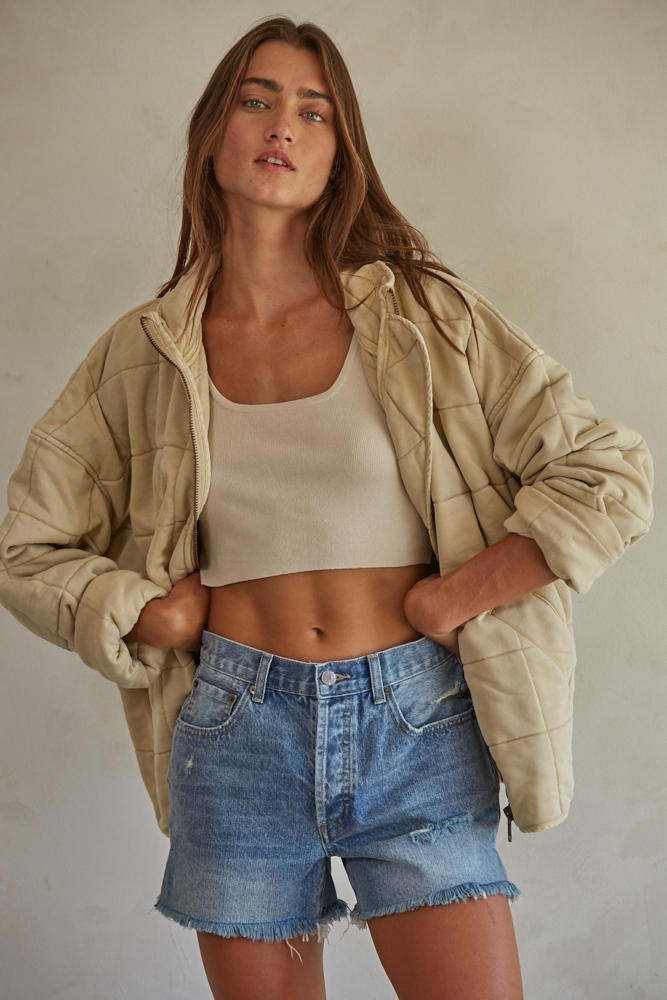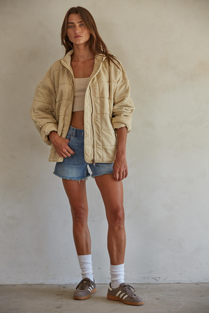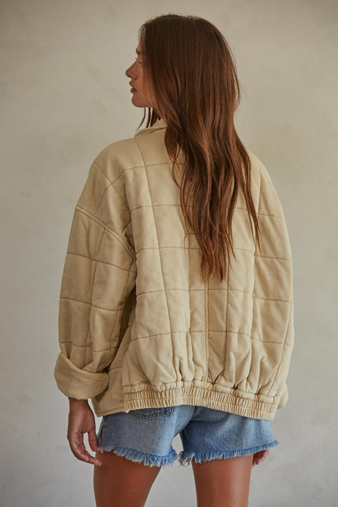 Long Sleeve Quilted Knit Mineral Washed Jacket