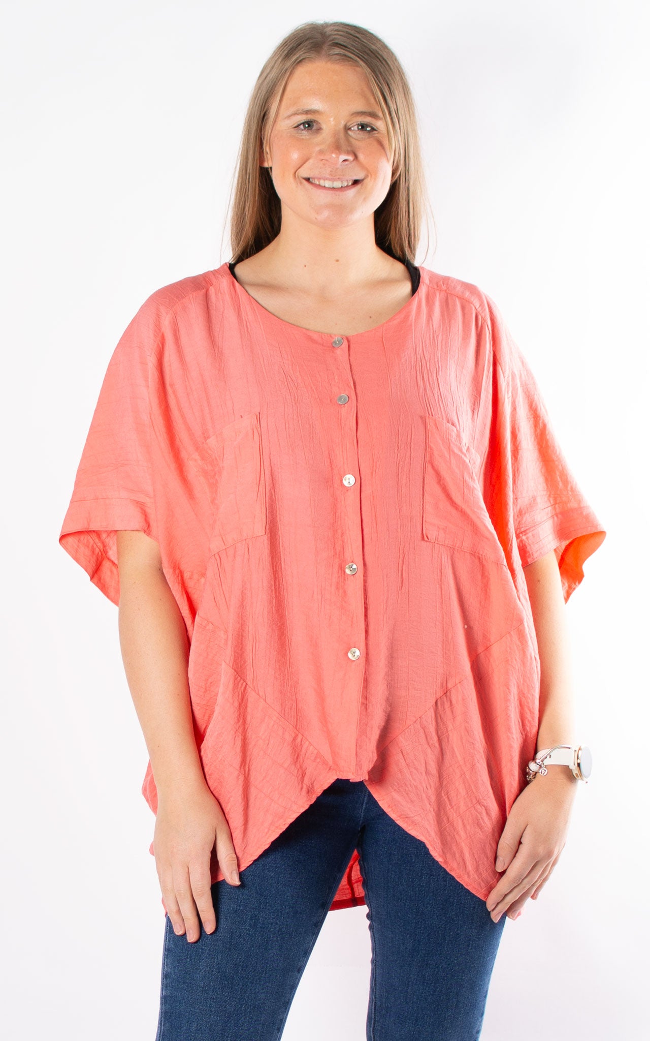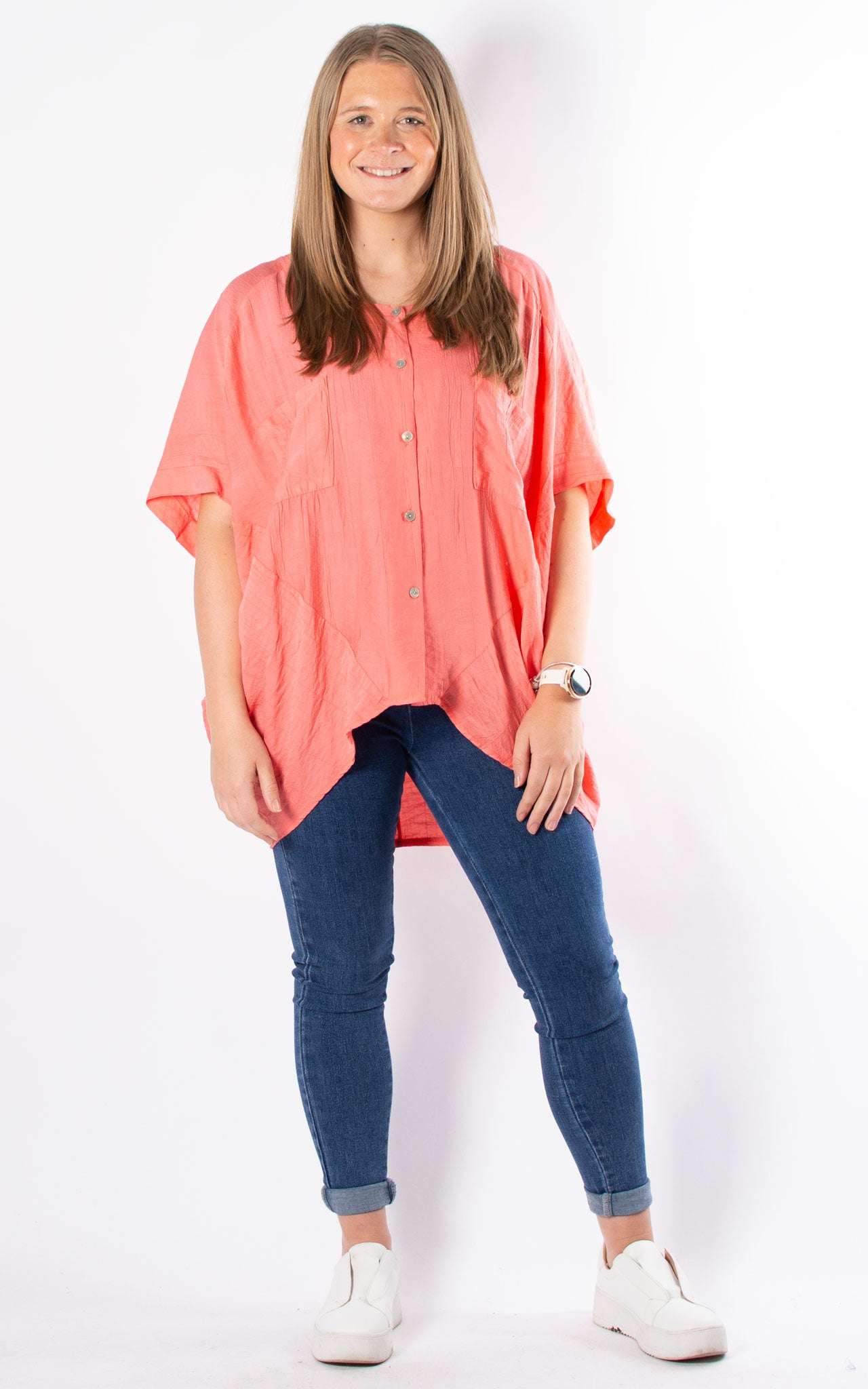 Affordable Luxury Isla Double Pocket Shirt | Coral – Last Few Pieces!