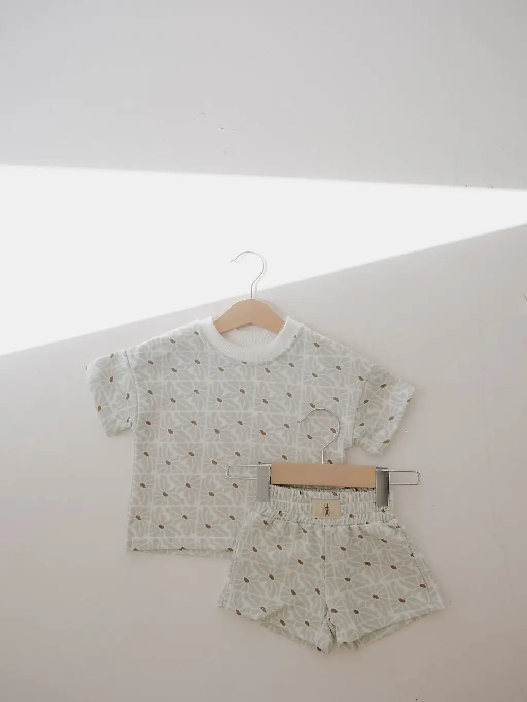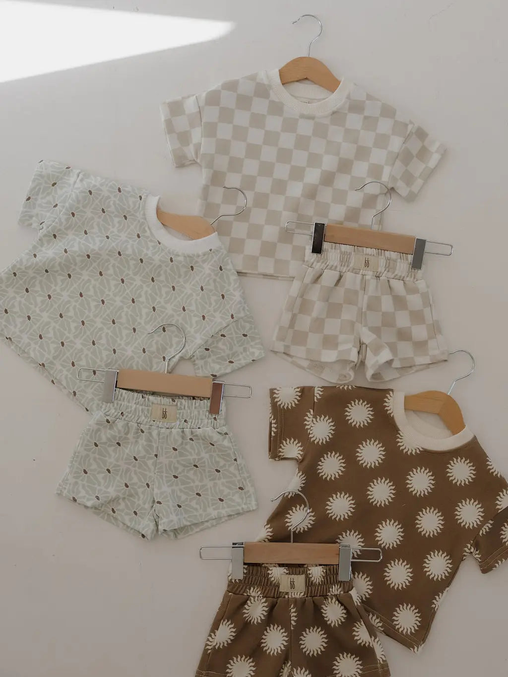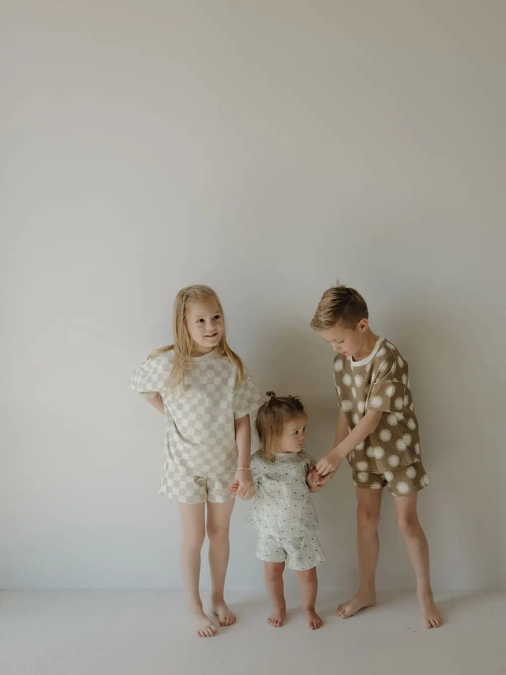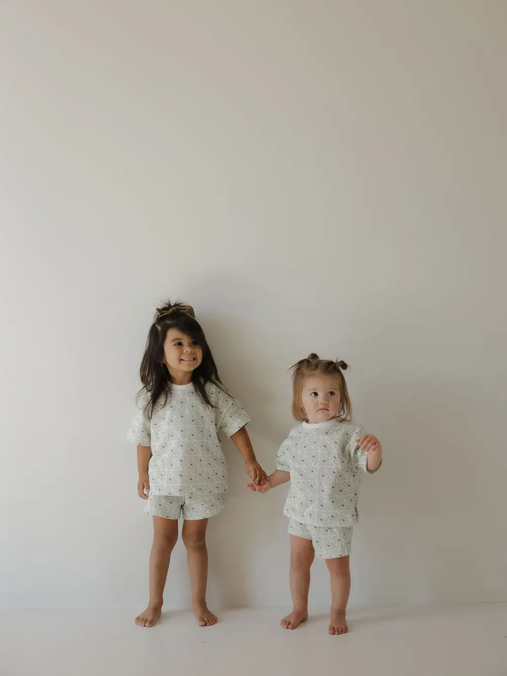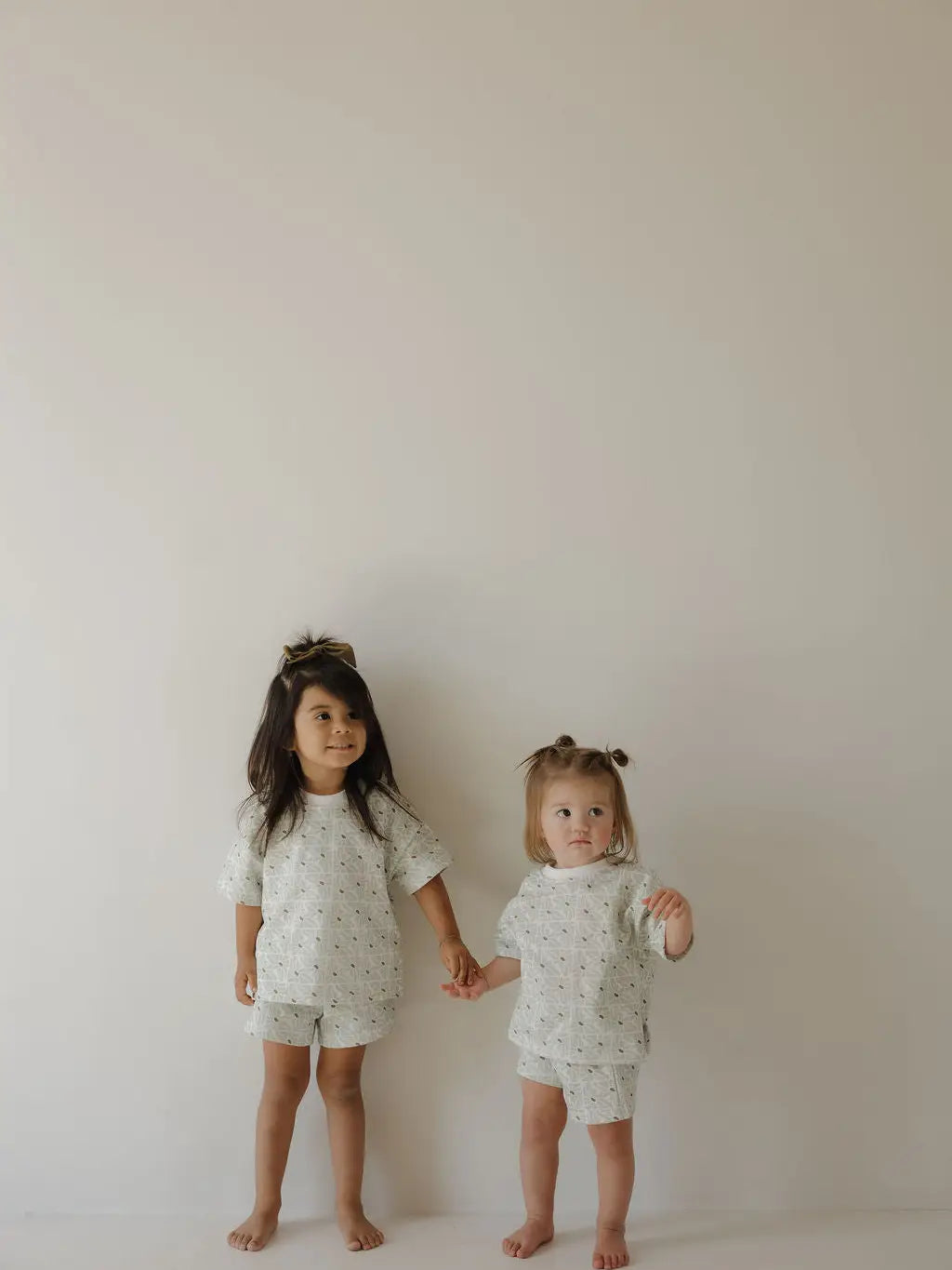 Perfect for warmer days, this set includes a soft short sleeve top and matching shorts, featuring our signature FF logo. Don’t forget to check out our matching rompers for the littlest ones!