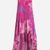 The Lila will always have your back with its lightweight, flowy, luxe chiffon fabric printed in our multi-colored fuchsia floral summer print. Its halter top and tiered ruffles give it an elevated look, perfect for a guest of wedding look, bridal shower, or engagement party! Pair it with a clutch & heels to dress it up, or with a jean jacket draped over your shoulders & a crossbody to dress it down, allowing you to wear it to a multitude of occasions. Eat freely, enjoy the breeze, and live it up at your event, in this on-trend summer must-have look!