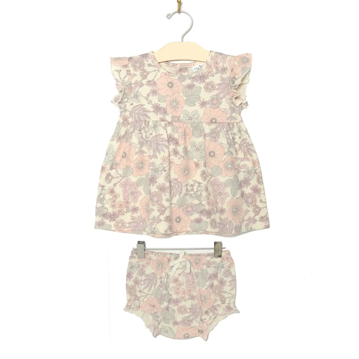 Our classic flutter tunic and bloomer set now in our softest 100% cotton combed jersey and vintage floral print. Great for all the warm weather adventures to come.
