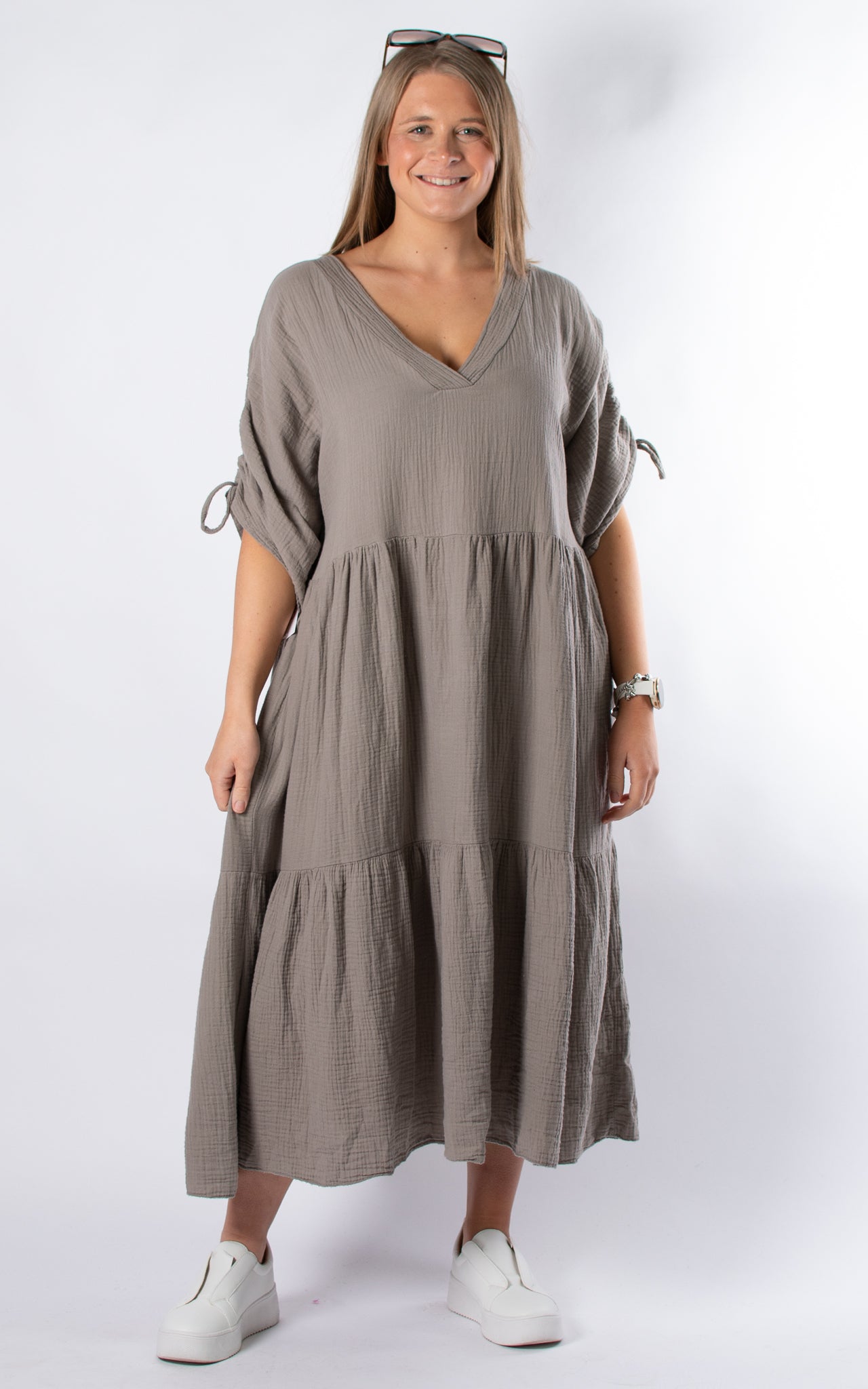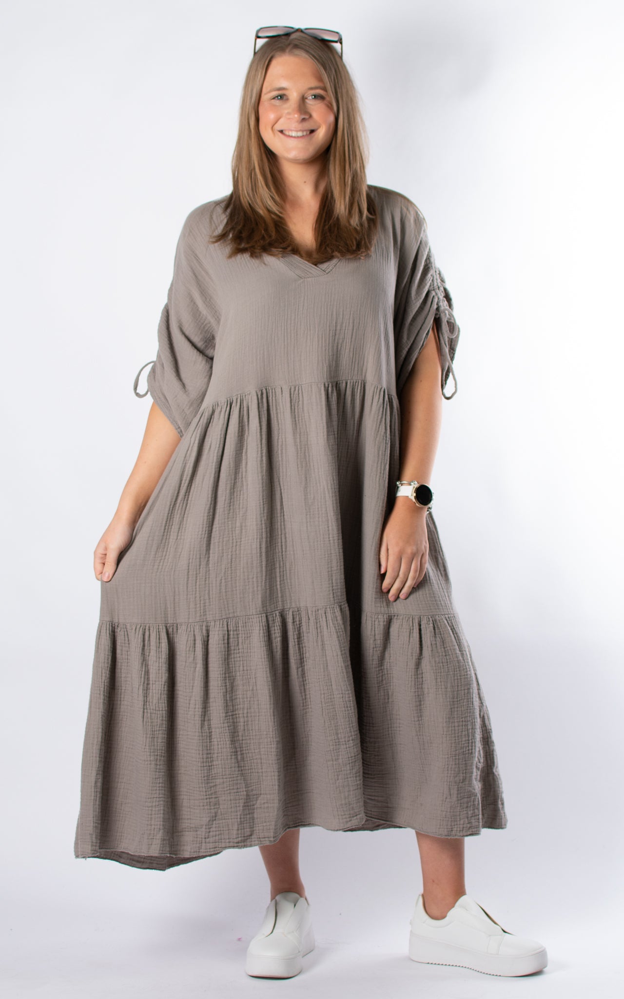 Customer Favorite Gloria V-neck Dress | Mocha – Almost Gone! quantity
