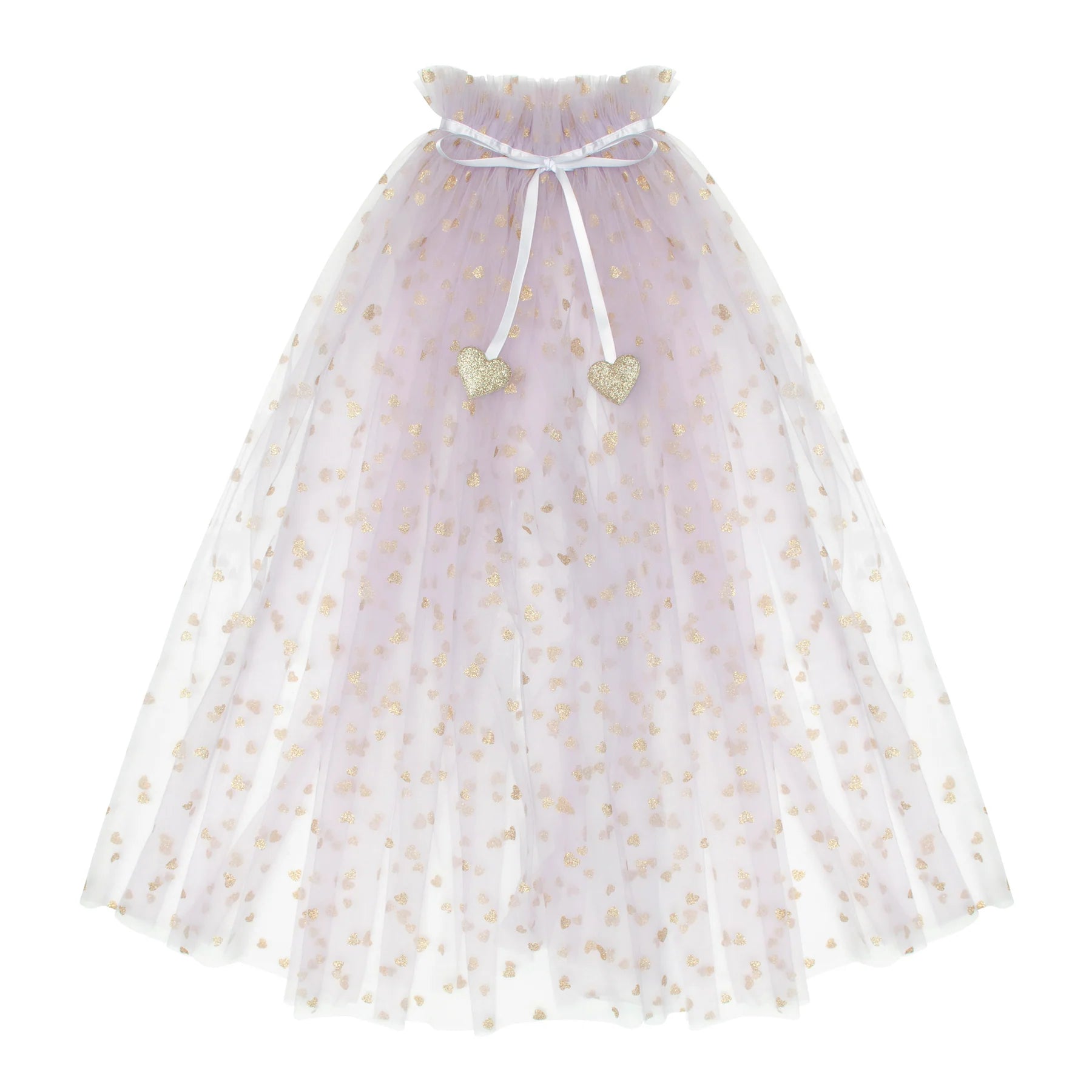 The sweetest little heart print cape in the most beautiful shade of lilac tulle! A must-have for their dressing up box! Pairs perfectly with our lilac heart tutu!