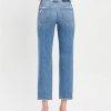 High-rise straight leg jeans. These are in a comfort stretch denim. These ankle length jeans, coming to fun stylish light wash with distressed detail detailing. If you love your skinny jeans, and you’re finding it hard to transition into a straight leg, this is the perfect pair due to its tapered straight leg.