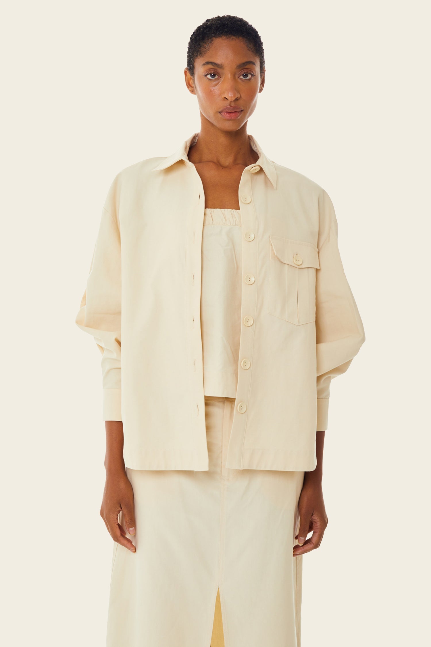 The perfect top to throw on over a simple tee or wear on it own with our Khaki Midi Skirt