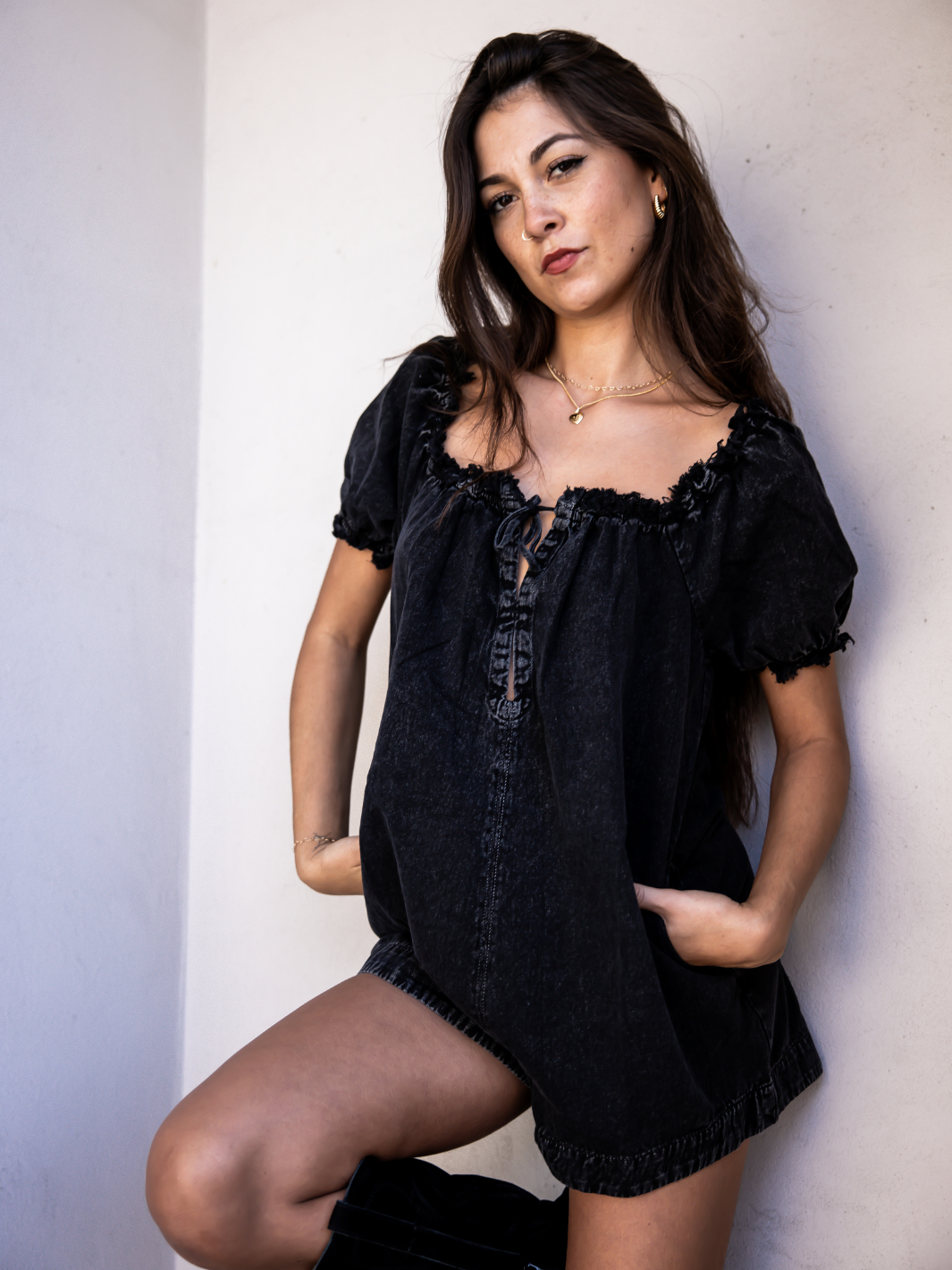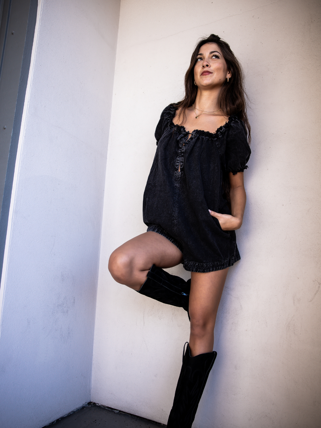 Dress it up with tall boots or keep it casual with sporty sneakers. The perfect denim outfit for any occasion, this romper offers endless possibilities for your wardrobe. Embrace the breezy feel and make a statement all season long!