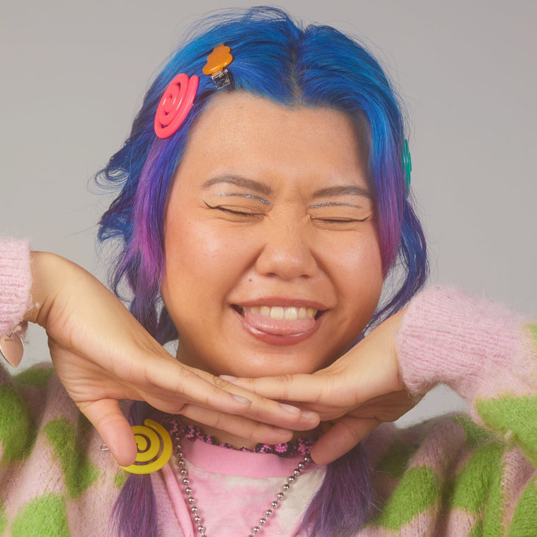 A simple pop of brightly colored swirl. This ball-and-clasp clip is perfect for all hair types and textures. Perfect for holding back bangs or adding a decorative pop to any hairstyle.