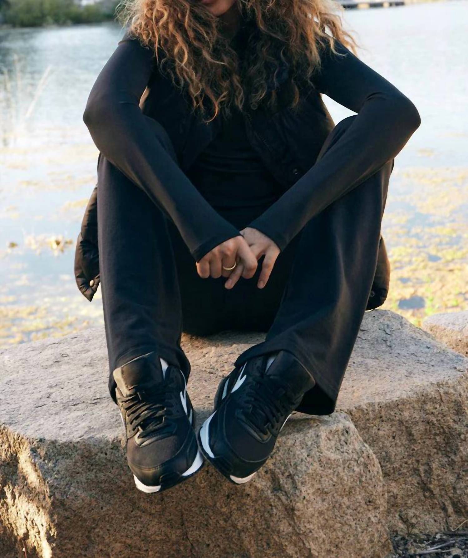 The Wear Me Out Flare Pant features a high waist and flare leg opening. Made with All Day Rib fabric (78% Polyester, 22% Spandex), it offers moisture-wicking properties and stretch. The pants are true to size and can be paired with the Stay Warm Funnel Sweatshirt for a complete look.