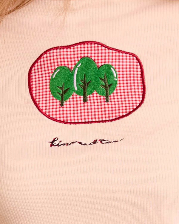 - Patchwork with tree embroidery made from leftover fabric
