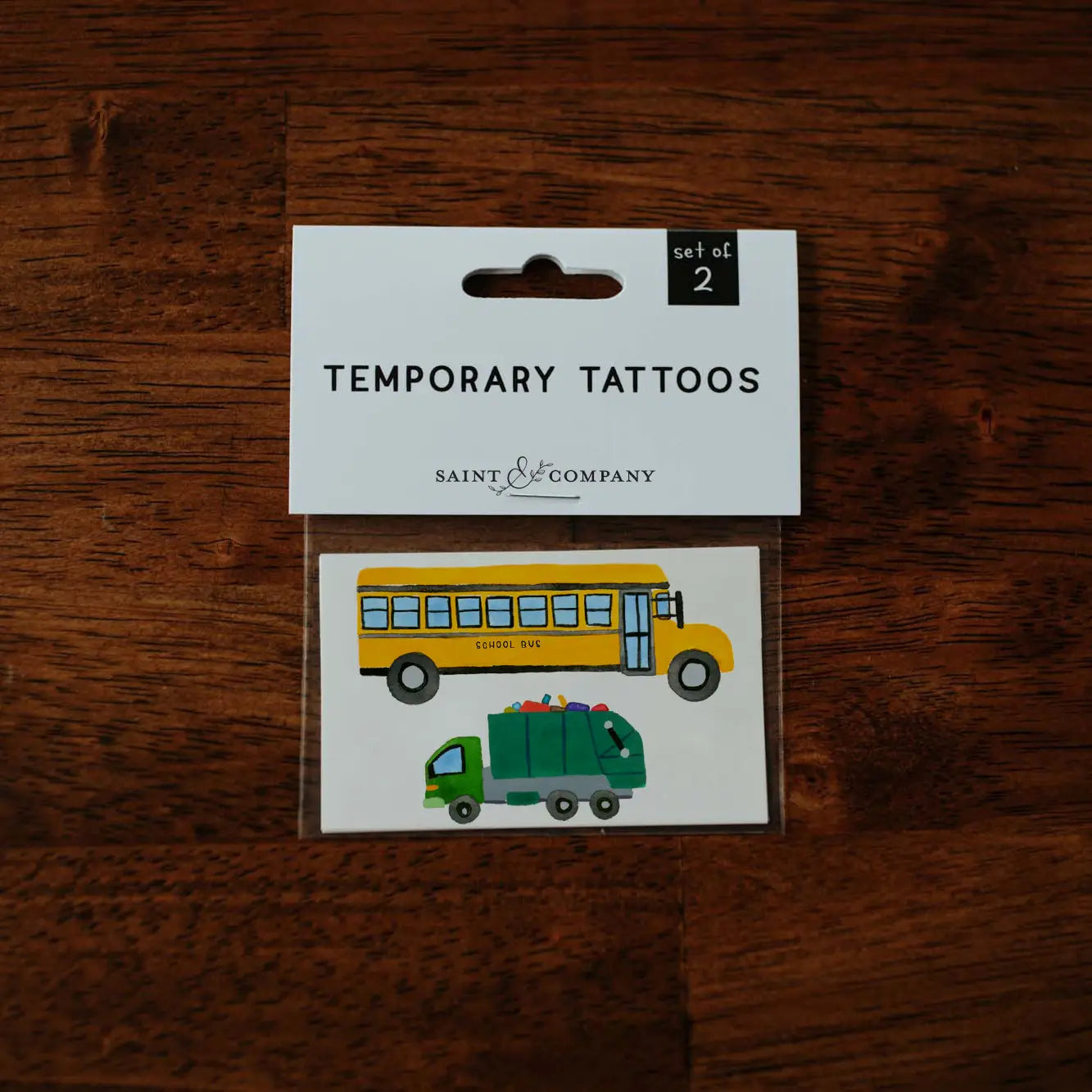 School bus + trash truck Set of 2 temporary tattoos