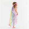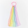 Soft georgette silk drapes from a silk garland adorned with matching ribbons. Hand-painted soft rainbow on a lavender garland.